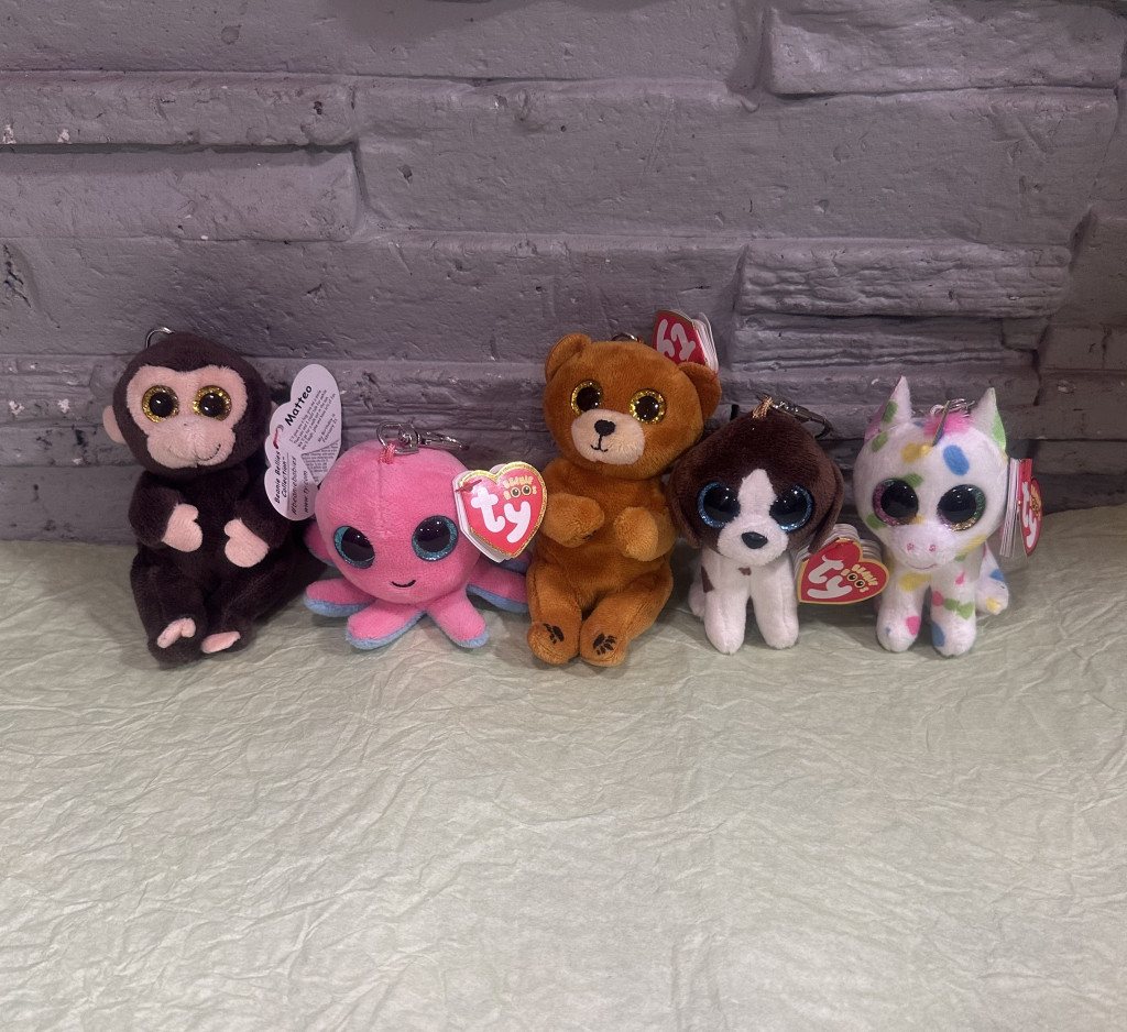 Kb. 8,5 cm.-es kulcstartós plüss figurák.